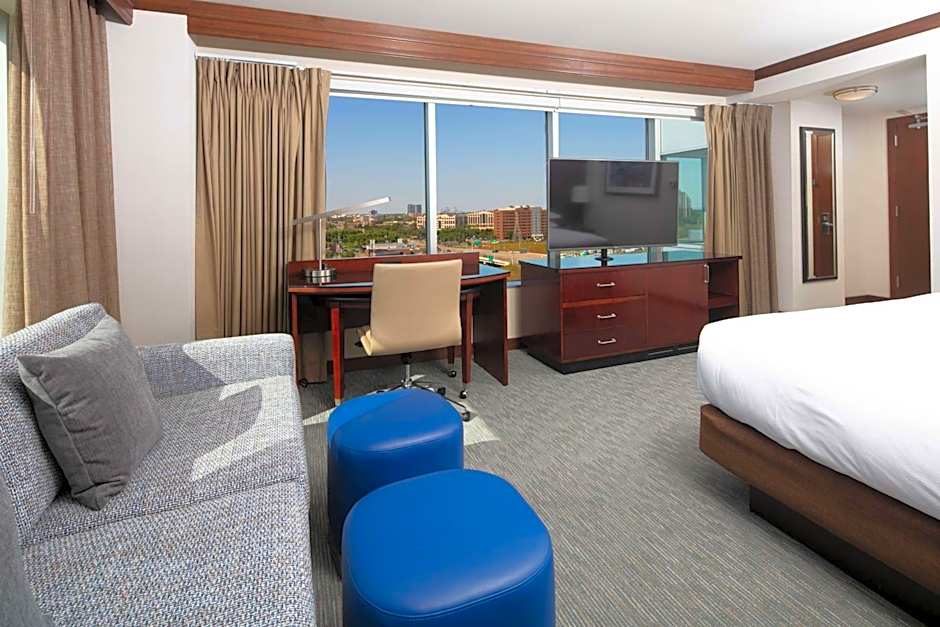 Any corresponding photo may not reflect the specific accessible room type or room feature. This hearing accessible standard room features one king bed(s). The room also has a visual alarm, and notification devices for the doorbell or door knock and incoming telephone calls.
